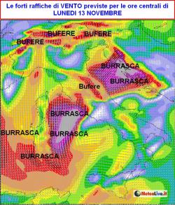 Per avere idea della furia di Eolo prevista per le ore centrali di lunedi 13 novembre basta guardare questa mappa.