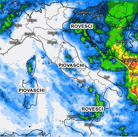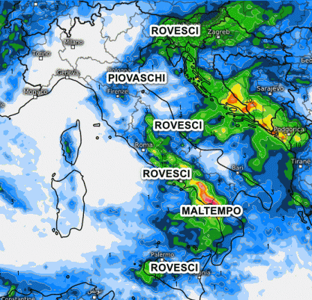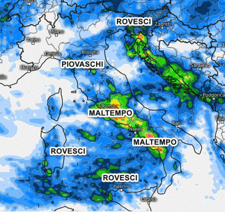 Ancora rovesci anche intensi tra basso Lazio, Campania e Calabria Tirrenica. Rovesci anche su Friuli e Sicilia, piovaschi tra Toscana ed Emilia Romagna, per il resto tempo asciutto.