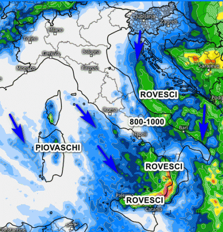 Piovaschi sulla Sardegna e nelle aree interne del centro, qui con quota neve in calo fino a 1200-1400 metri. Rovesci anche tra il sud della Calabria e il nord della Sicilia, per il resto tempo asciutto.