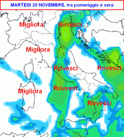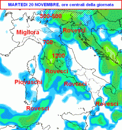 Martedì 20 novembre: MALTEMPO sull’Italia, spruzzate di NEVE a bassa quota al NORD