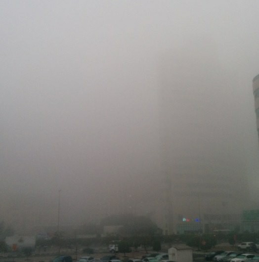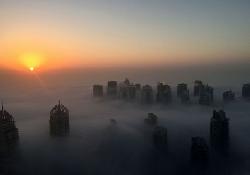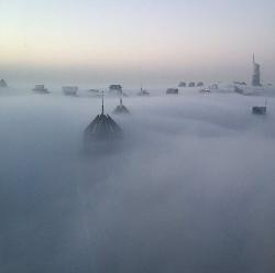 Medio Oriente : maestose e fitte nebbie avvolgono Dubai. Foto mozzafiato