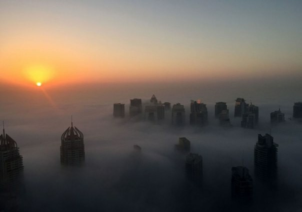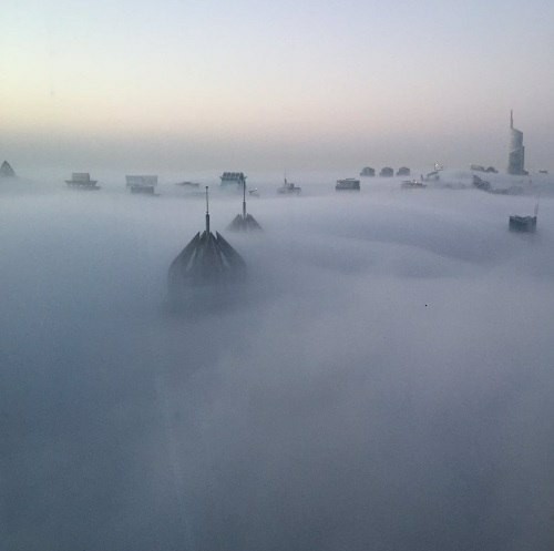 La capitale degli Emirati Arabi, Dubai, questa mattina si è risvegliata totalmente avvolta dalla nebbia regalando uno scenario, dall’alto, davvero suggestivo. Il fenomeno non è insolito per Dubai, spesso soggetta a forti anticicloni e alla presenza ravvicinata del mare.