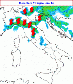 Mercoledì 11 luglio: TEMPORALI maggiormente diffusi al NORD