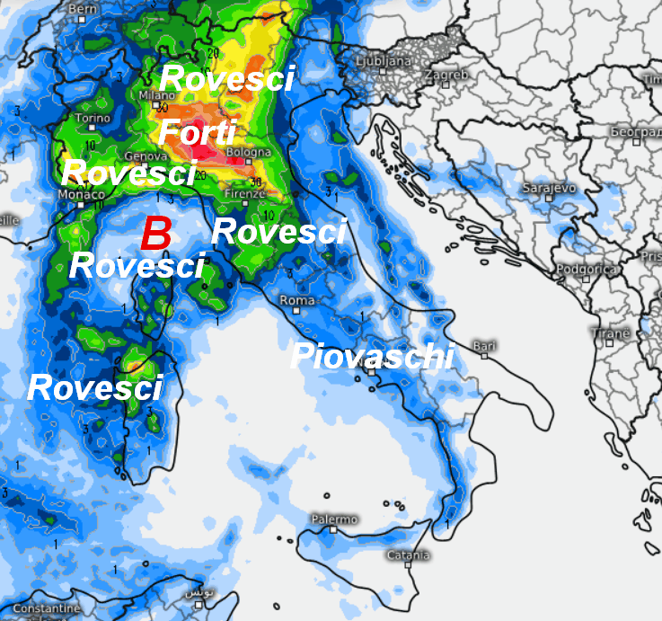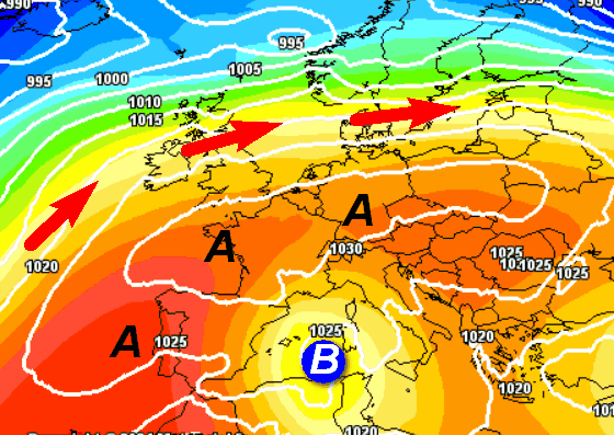 La rimonta dell’alta pressione sull’Europa centrale spingerà verso sud il complesso depressionario. Il perno della struttura ormai molto attenuata, si piazzerà a sud ovest della Sardegna. Questi saranno gli effetti in Italia nella giornata in parola: