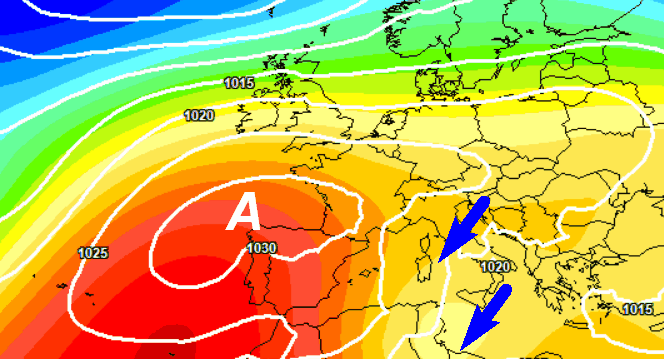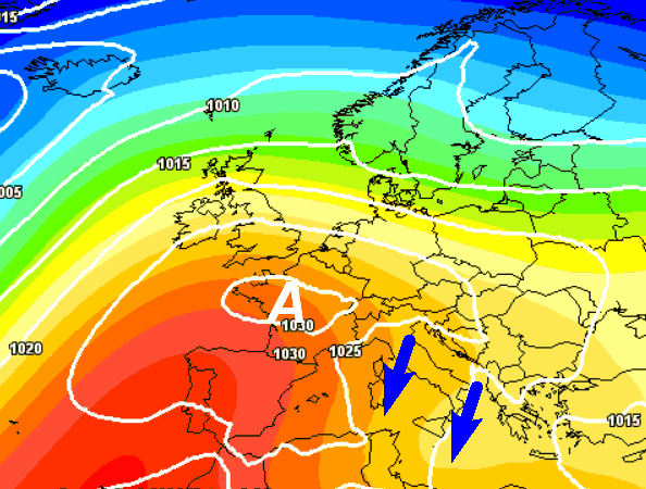 Ecco l’alta pressione con asse più occidentale e l’Italia parzialmente esposta a correnti fresche ed un po’ instabili dirette essenzialmente sul versante adriatico e al meridione. Il tempo sarà quindi buono, ma con incertezze nelle aree sopra menzionate, in un contesto termico generalmente gradevole.