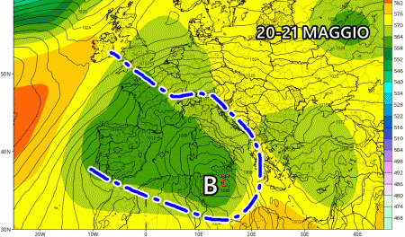 Sabato 20 Maggio: forte peggioramento al Nordovest, centro Italia e isole maggiori. In arrivo un nuovo ciclone dal Mediterraneo occidentale. Temperature in aumento.