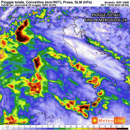 Martedì 23 Maggio: instabilità pomeridiana e serale molto presente nelle zone interne da nord a sud. Più variabile sulle coste.
