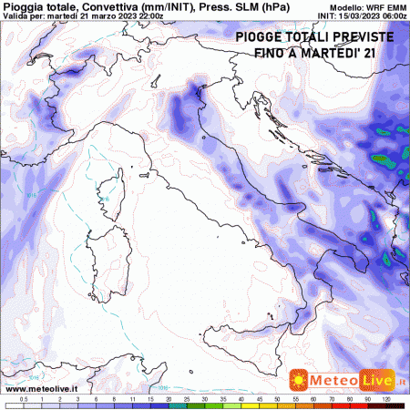 Riferendoci essenzialmente ai prossimi 7 giorni, le piogge saranno davvero molto poche!