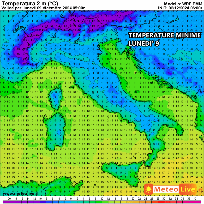 Il calo termico in Italia arriverebbe in modo chiaro ed evidente dalla sera dell’Immacolata. Al risveglio del 9 Dicembre le minime potrebbero scendere diffusamente sotto lo zero al nord e nelle zone interne del centro. Gran freddo anche al sud Italia.