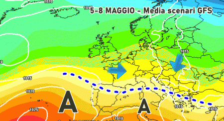 Nel pieno della prima decade di Maggio la media degli scenari propone la persistenza di correnti instabili soprattutto al nord e al centro Italia. Gli anticicloni troverebbero pochi spazi per puntare il naso sullo Stivale.