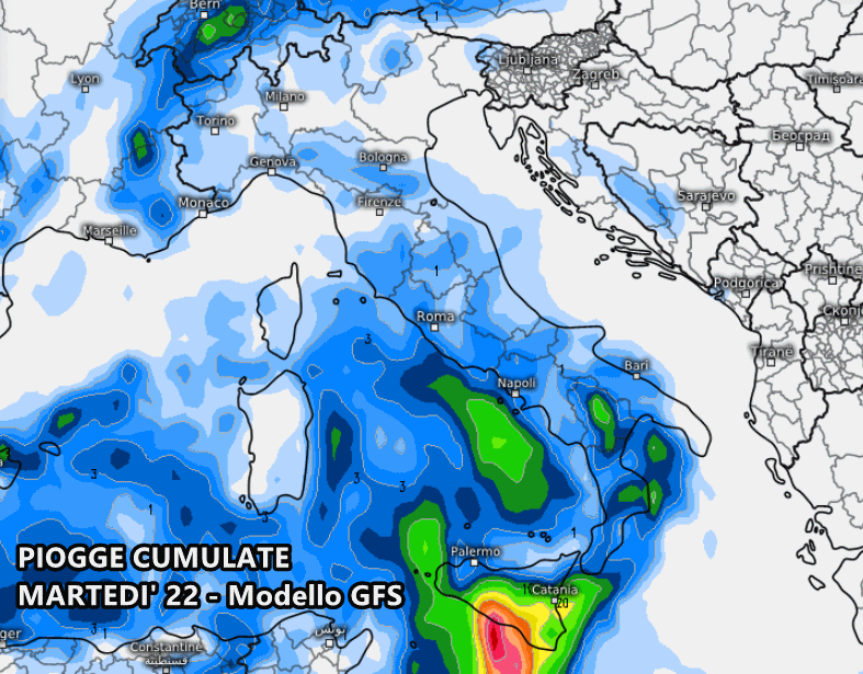 Anche Martedì 22 Ottobre il maltempo sarà di casa all’estremo sud, specie in Sicilia: