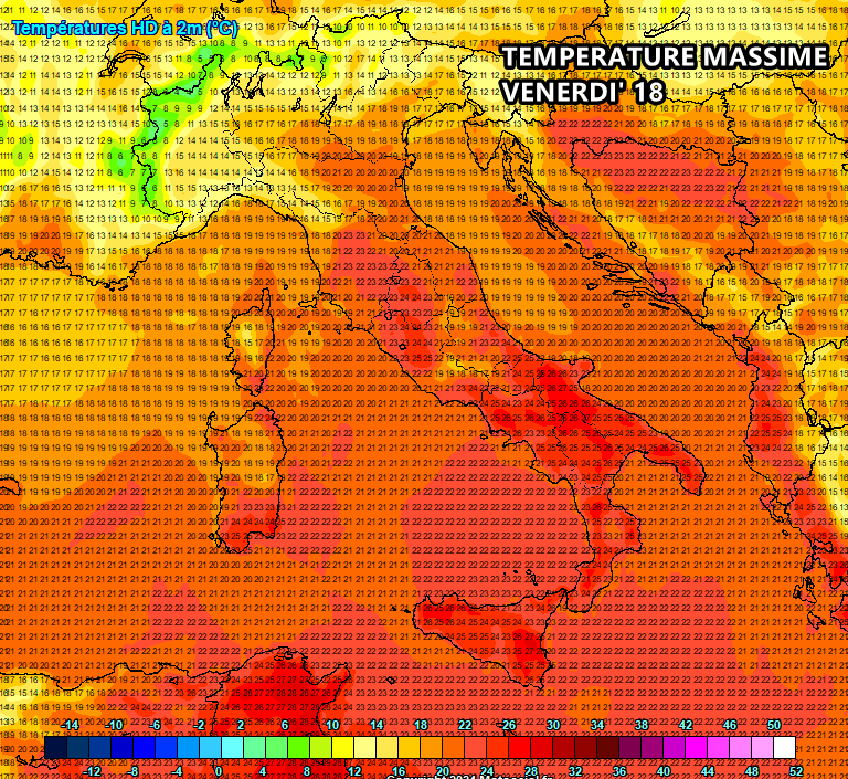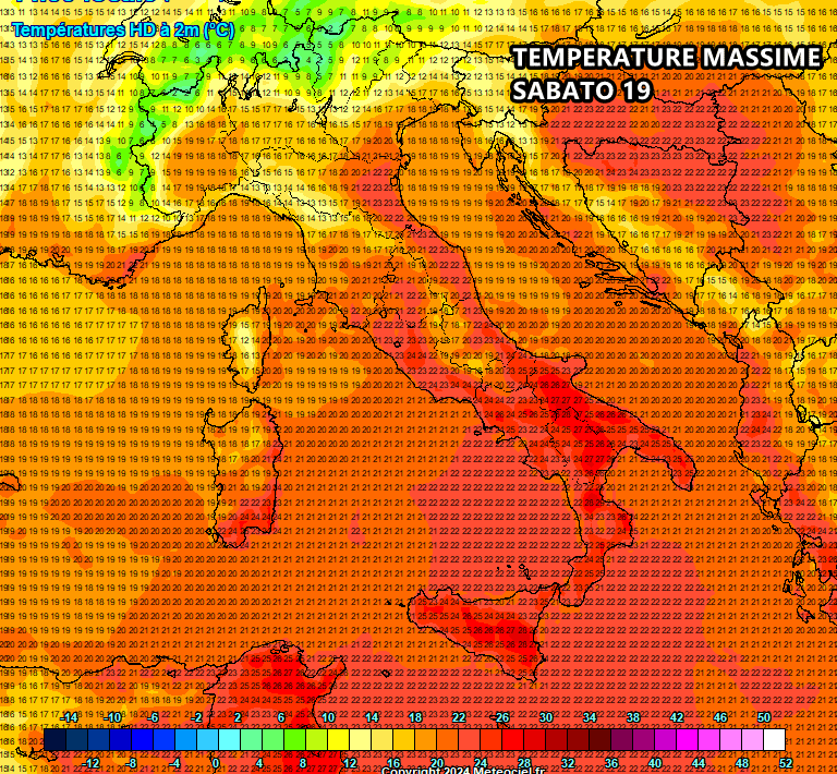 Sabato 19 situazione pressoché analoga, con temperature simil-estive nelle zone interne del centro e del sud, oltre che sulle isole maggiori.