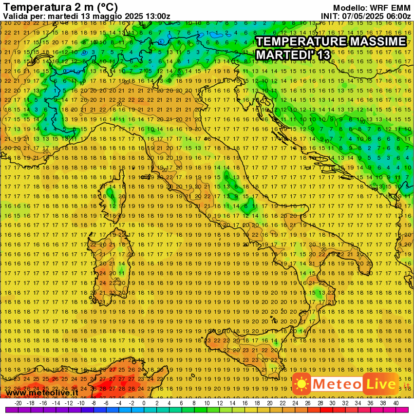 In ogni caso, le temperature sono destinate a scendere, come mostrato dalle massime previste per martedì 13 maggio. Si ipotizza che le massime possano scendere anche al di sotto dei 20 ° sulle coste adriatiche e parte del Sud, mentre in Val Padana e sulle regioni tirreniche potremmo sfiorare i 21 o 22 °. In ogni caso saremo ben lontani dall’assaggio d’estate arrivato nei giorni scorsi.