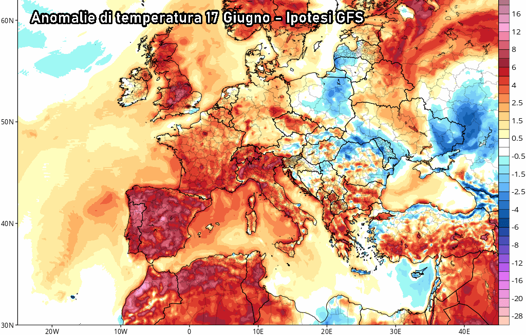 Chiaramente siamo ancora nel campo delle ipotesi meteo a lunga scadenza, e quindi non escludiamo nuovi improvvisi ribaltoni all’interno delle simulazioni modellistiche. Nel caso in cui dovesse prevalere l’attuale scenario proposto, in particolar modo dal modello americano GFS, avremmo a che fare con almeno altri 10 giorni di caldo crescente su tutto il Centro e il Nord, con temperature sempre superiori alle medie del periodo sia di giorno che di notte. Qualche temporale potrebbe mostrarsi al nord tra 14 e 15 Giugno, ma pur sempre in un contesto caldo e afoso.
