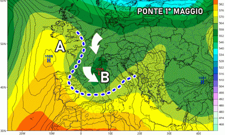 Lunedì 1° Maggio, giorno della festa dei lavoratori, il maltempo entra nel vivo su tutto il nord, dove subentrano piogge diffuse e temporali localmente inetnsi. Centro e sud vedranno tempo più variabile e addirittura stabile sul medio-basso Adriatico. Ovviamente la previsione per la festa dei lavoratori è ancora suscettibile di cambiamenti, specie nella tempistica dei fenomeni.