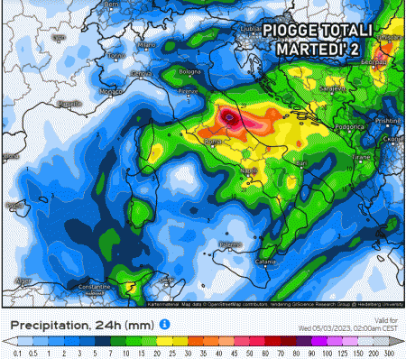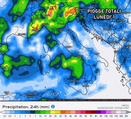 Martedì 2 Maggio la depressione tenderà a muoversi verso sud-est, favorendo un deciso peggioramento con tante piogge e temporali su tutto il centro e il sud. Al nord residue piogge sul Nordest, con tendenza ad esaurimento dei fenomeni.
