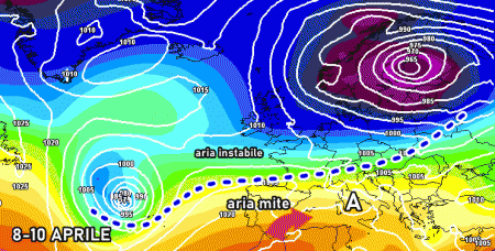 Come già accennato ieri, l’aria artica tenderà rapidamente a ritirarsi lasciando spazio ad un’avvezione più mite da sud-ovest.
