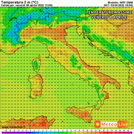 Eloquenti le temperature massime previste venerdì 8 aprile, con picchi fino a 25°C:
