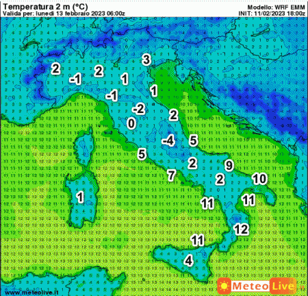 Prima che ciò accada avremo ancora infiltrazioni di aria fredda che si faranno sentire essenzialmente sul basso Adriatico e al sud tra questa sera e la mattinata di domani, lunedi 13 febbraio.