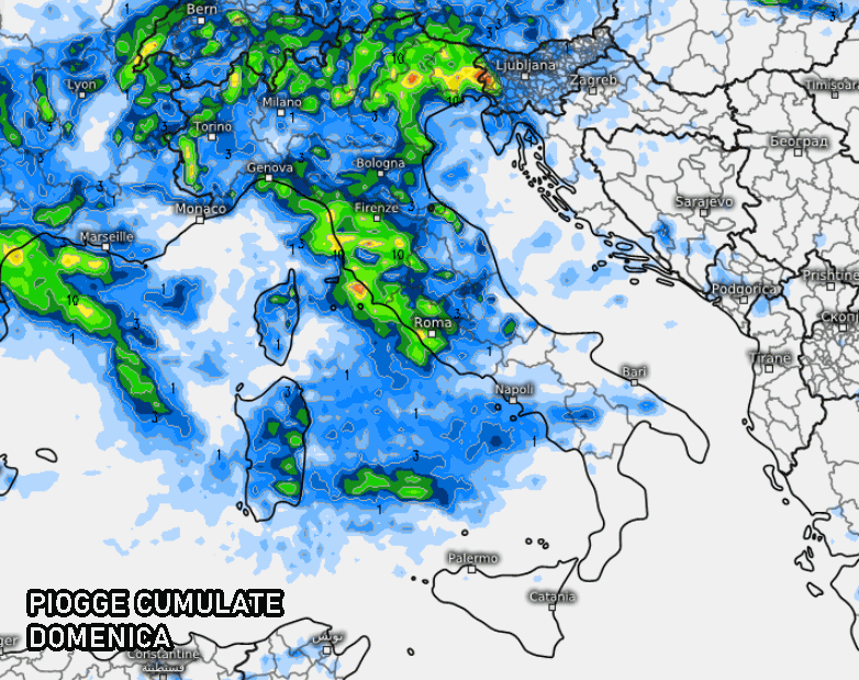 I temporali potranno assumere localmente carattere violento, con grandinate, colpi di vento e accumuli consistenti (oltre 30 mm) concentrati in poche ore. L’instabilità, però, avrà durata limitata: già lunedì si tornerà a un contesto più stabile, con il progressivo rafforzamento dell’alta pressione.