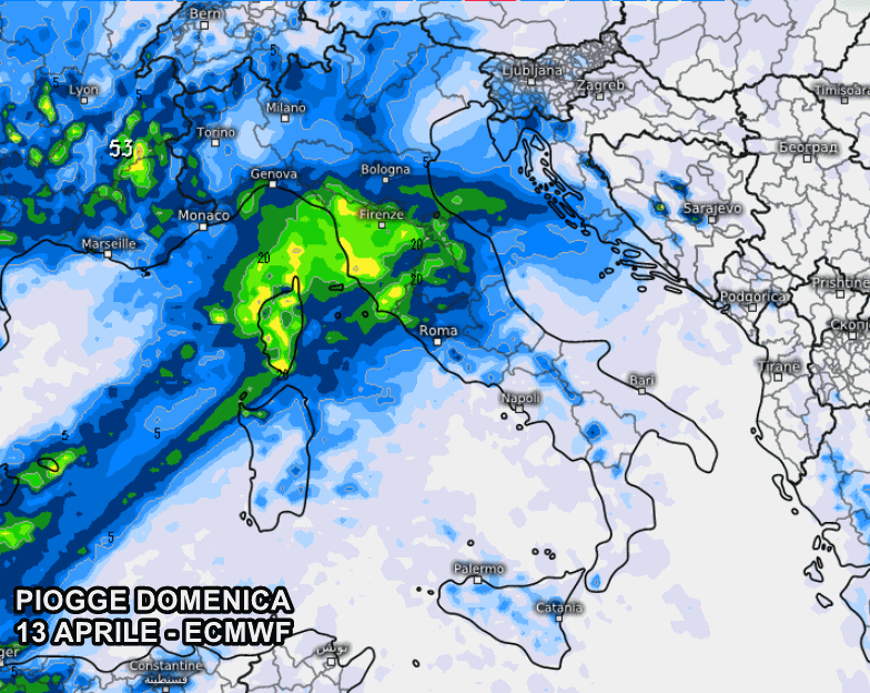 La Domenica delle Palme vedrà un consistente peggioramento, in particolar modo sulle regioni centrali, specie tra Lazio e Toscana, dove si prevedono piogge moderate e persistenti. A dispetto delle previsioni dei giorni scorsi, avremo meno pioggia sulle regioni del Nord: gli ultimissimi aggiornamenti dei principali centri di calcolo mostrano quantitativi di pioggia totali nell’arco dell’intera domenica abbastanza blandi su tutto il Nord Italia, eccezion fatta per la Liguria e la Romagna, ma in ogni caso l’ombrello sarà un fedele alleato.