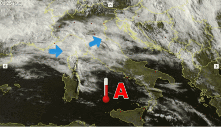 Un blando rinforzo dell’alta pressione sub-tropicale, o meglio di un suo lembo settentrionale, sta favorendo un netto miglioramento del tempo ed un aumento delle temperature su tutto il sud e le isole maggiori. Ciò però non è sufficiente ad allontanare definitivamente il flusso d’aria atlantica che continua a scorrere imperterrito sull’Europa centrale ed il centro-nord Italia.
