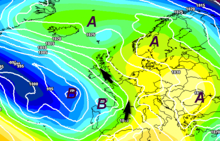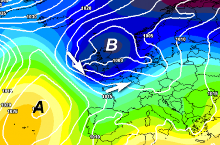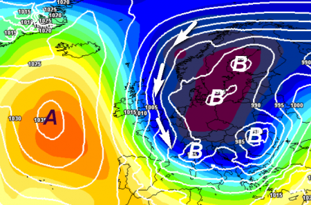 Il primo è proprio il tipo di cambiamento che intende il modello europeo, con gli anticicloni che si vanno a localizzare verso il nord-est del Continente e le grandi depressioni che dopo tanto tempo (troppo) vanno a posizionarsi ad ovest e vengono a coinvolgere un po’ tutta la Penisola, finalmente anche il nord e il Tirreno: