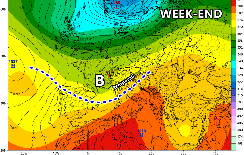 Forte peggioramento in vista nel week-end, nord Italia nuovamente nel mirino dei temporali!