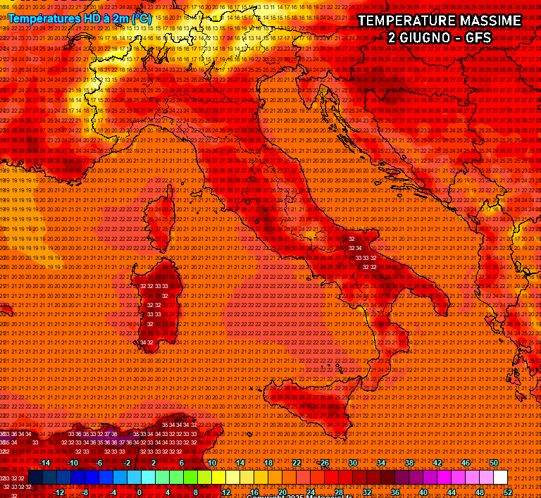 Le massime previste per il 2 Giugno, secondo il modello americano, potrebbero sfiorare i 33°C su foggiano e Sardegna. Fino a 30°C nel Lazio, Sicilia, Basilicata, Calabria, Campania. Attorno ai 27-30°C in Val Padana. Insomma una giornata estiva a tutti gli effetti!