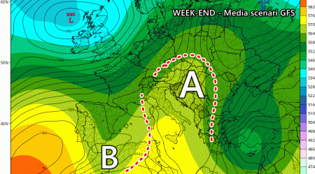 La tendenza è confermata anche dalla media degli scenari del modello americano GFS, praticamente sovrapponibile con la media del modello europeo ECMWF.