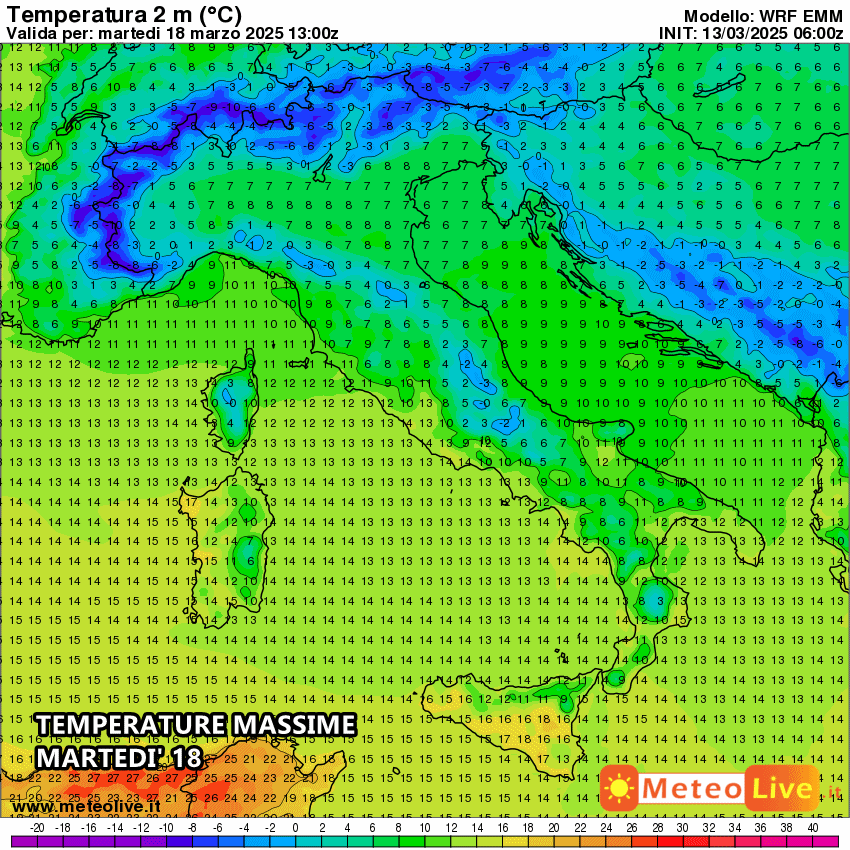 Davvero eloquenti le temperature massime previste per martedì, con valori inferiori di almeno 15°C rispetto a quelli di venerdì. In alcuni settori collinari e nelle aree interne di Puglia e Basilicata, lo scarto termico potrebbe addirittura superare i 20°C rispetto alla giornata di venerdì.