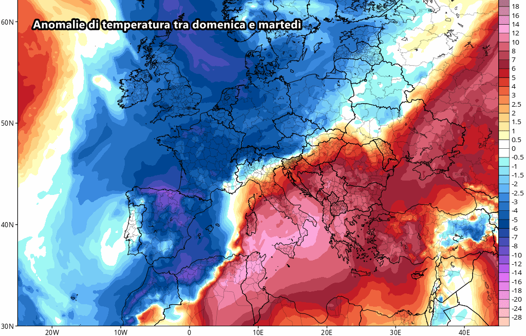 Nei prossimi 7 giorni la situazione si farà nettamente più estrema e potenzialmente dannosa per tante nostre regioni, da Nord a Sud. Le anomalie di temperatura tra l’Europa centrale e il Mediterraneo si accentueranno ulteriormente e ciò comporterà l’arrivo di fenomeni ancor più forti e violenti sulle regioni del Nord già da questo fine settimana, con caldo ancor più intenso sul meridione.