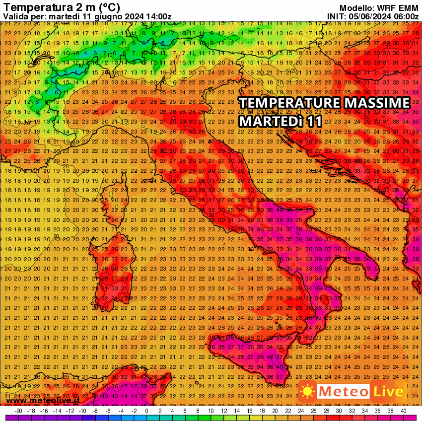 Anche la giornata di martedì si preannuncia molto calda sul meridione con punte di 38-40° nei settori interni, con la Sicilia al centro del grande caldo. È chiaro che con queste temperature, con il costante aumento dell’umidità, giorno dopo giorno avremo un’intensificazione dell’afa pomeridiana ed infine anche quella serale, soprattutto lungo le coste.