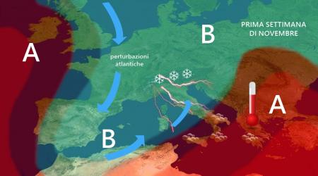 Sarà proprio il giorno di Ognissanti, lunedì 1° novembre, ad inaugurare una prolungata fase di maltempo: aria molto fresca e instabile si dirigerà sul Mediterraneo occidentale, favorendo una risalita di aria molto umida verso tutta la nostra penisola.