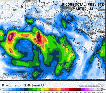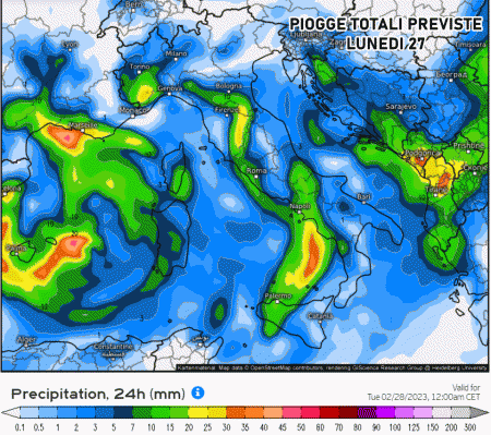 Nella giornata di martedì 28 febbraio possiamo osservare una maggior concentrazione delle piogge sulle regioni del centro e del sud, in primis sul versante tirrenico. Al nord avanzerà un miglioramento ed anche un aumento delle temperature.