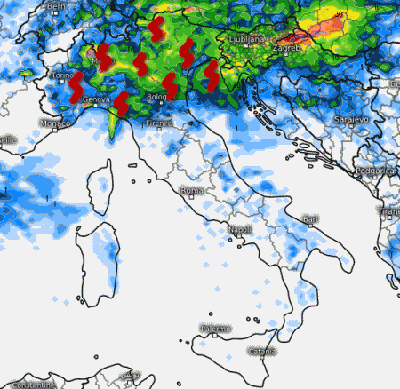 Ecco i temporali su quasi tutto l’arco alpino (ad eccezione forse della Val d’Aosta). I fenomeni potrebbero sconfinare in parte sulle zone di pianura adiacenti specie tra il tardo pomeriggio e la serata. Piovaschi anche a sud del Po e sulla Liguria specie al mattino, unitamente a qualche temporale nelle aree interne del centro, per il resto tempo abbastanza soleggiato. Clima abbastanza caldo specie al centro-sud, ma senza punte esagerate