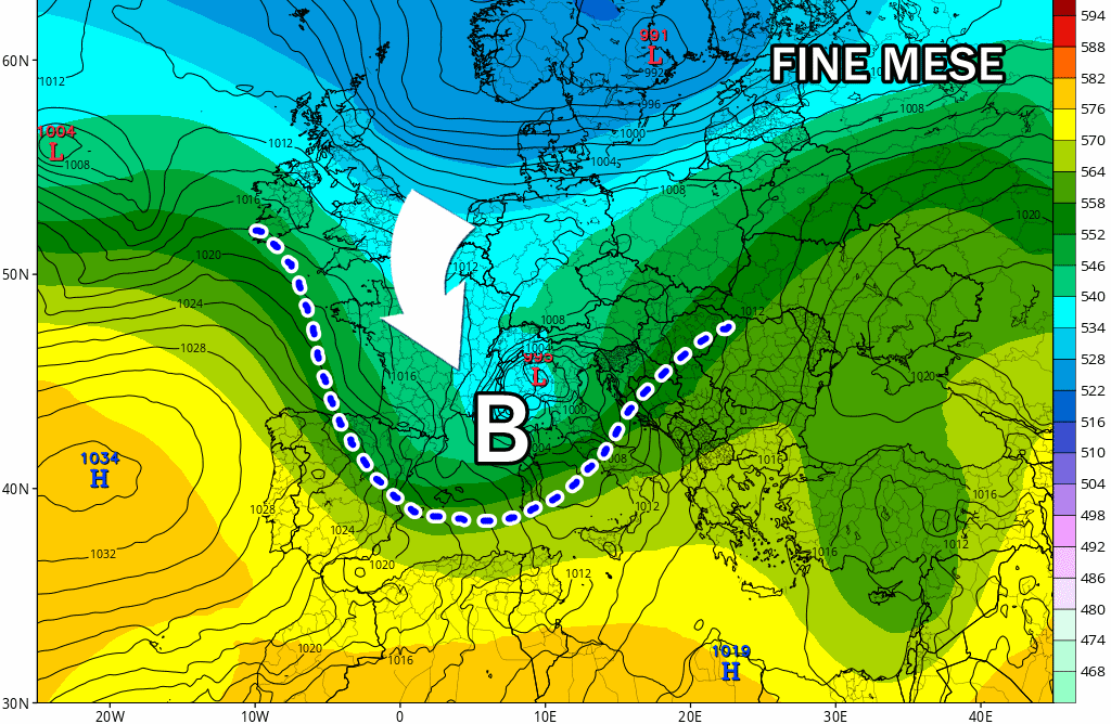 Questa ipotesi è portata avanti dal modello americano GFS, che mostra questa irruzione fredda dirigersi verso le regioni del Nord, dove scaverebbe una depressione piuttosto incisiva e carica di maltempo.
