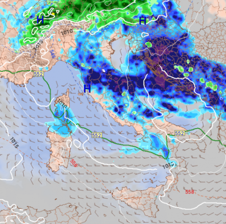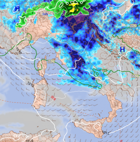 Nelle ore successive eccolo in azione tra nord-est e le regioni centrali, ampie schiarite e miglioramento già al nord-ovest: