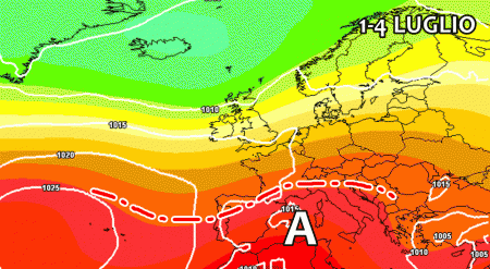 Per rivedere un anticiclone un po’ più invadente bisognerà attendere l’inizio di Luglio. Al momento, tuttavia, non si prevedono promontori sub-tropicali estremi come quello attualmente presente in Italia. Il caldo non dovrebbe mancare, sebbene senza eccessi pesanti.