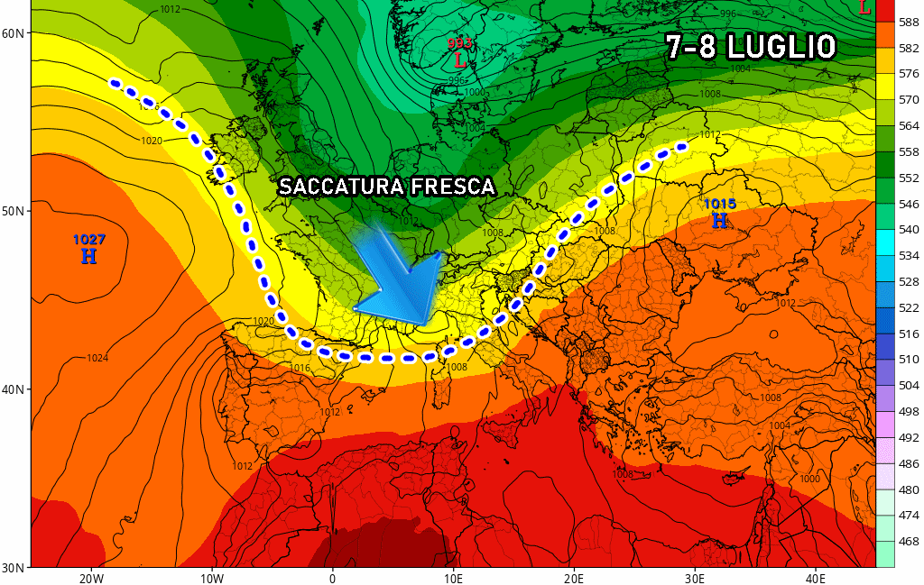 Ma la vera svolta arriverà sabato 5 e soprattutto a inizio prossima settimana, quando a partire da lunedì 7 luglio, il promontorio africano tenderà gradualmente a indietreggiare lasciando spazio a correnti nord atlantiche, colme di aria fresca e molto instabile, che oltre ai temporali porteranno anche un refrigerio diffuso da nord a sud.
