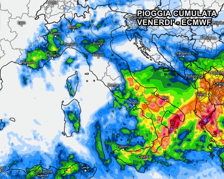 Forte maltempo anche venerdì, su tutto il sud Italia. Accumuli abbondanti in Calabria, ma rischio nubifragi esteso anche a Basilicata e Puglia. Piogge importanti su Campania, Molise e Abruzzo: insomma sarà una giornata simil-autunnale.