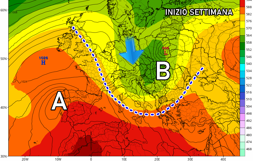 Irruzione fresca in azione, si parte dal nord Italia! Lunedì pieno di maltempo.