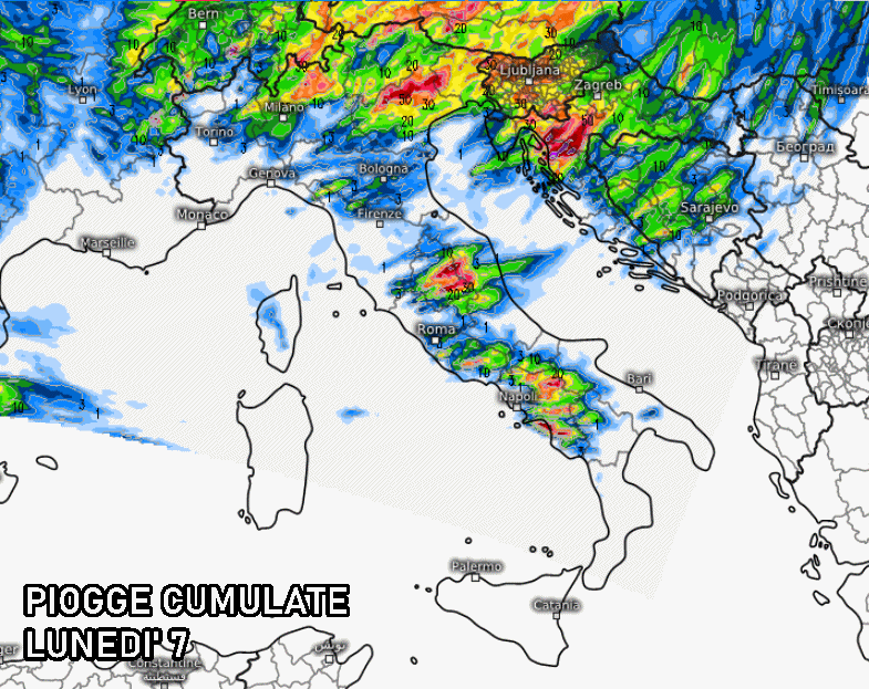 Questi fenomeni anticipano un lunedì tutt’altro che tranquillo, perché il cuore dell’irruzione fredda è atteso proprio nelle prossime ore.