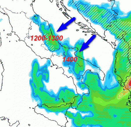 La mappa precipitativa rileva puntualmente i bianchi fiocchi che potrebbero cadere attorno a 1200-1400 metri tra il sud delle Marche, l’Abruzzo e il Molise. Nevicherebbe anche sulla Lucania al di sopra dei 1500-1600 metri, mentre il resto del meridione verrebbe interessato da forti venti freddi e rovesci anche consistenti.