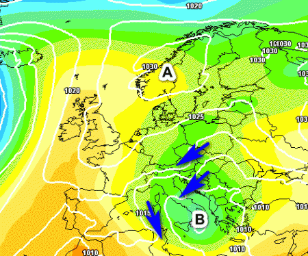 Notiamo una depressione centrata sullo Ionio che centrifugherà aria fresca ed instabile da nord-est sulla nostra Penisola. Le regioni maggiormente interessate saranno in una prima fase le centro-meridionali adriatiche, ma in un secondo momento anche il nord avrà la sua dose di instabilità nell’arco della settimana.