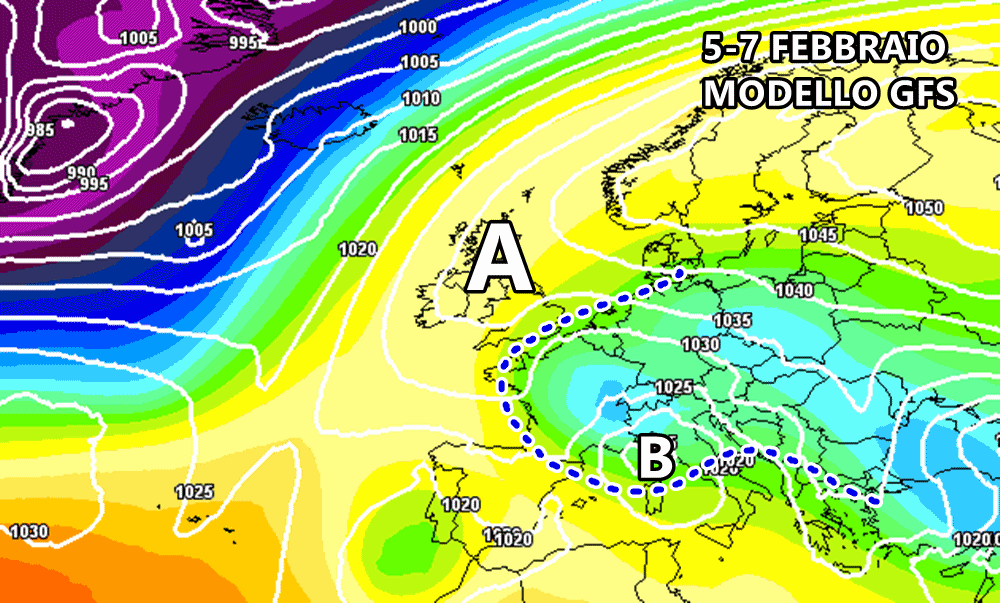 La prima decade di febbraio potrebbe riservarci parecchie sorprese invernali, grazie alla riapertura della porta orientale. Il vortice polare tenderà gradualmente a indebolirsi, permettendo la risalita dell’alta pressione delle Azzorre sul Nord Europa, per poi piegarsi verso la Scandinavia e la Russia, dando origine per qualche giorno al ponte di Wejkoff.