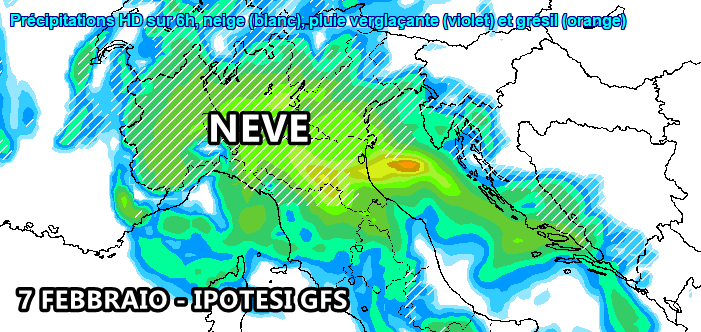 Ad esempio, il modello americano GFS mostra una configurazione particolarmente prolifica in termini di neve per le regioni del Nord. L’aria molto fredda, proveniente dall’Est Europa, potrebbe raggiungere prima i Balcani, per poi compiere un largo giro a nord delle Alpi, fiondandosi sul Mar Ligure, dove darebbe vita a una depressione colma di maltempo per gran parte del Centro-Nord Italia. Considerando l’afflusso di aria molto fredda dall’Est Europa, su tutto il Settentrione arriverebbe la neve fino a quote pianeggianti, con accumuli importanti, qualora dovesse davvero realizzarsi questa intricata configurazione.