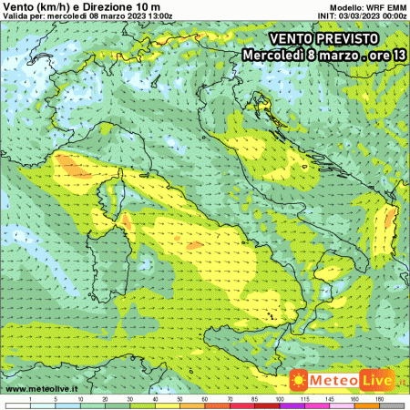 Le piogge saranno, effettivamente, molto isolate e relegate al lato tirrenico e al Triveneto. Altrove è probabile la presenza di tempo più asciutto e schiarite. Ma a creare grattacapi potrebbe essere il vento di libeccio che con le sue raffiche oltre i 30-40 km/h potrebbe sferzare gran parte del centro e del sud. I venti più sostenuti li ritroveremo in Sardegna e su buona parte del versante tirrenico, ma anche in Appennino e sull’arco alpino non mancheranno forti folate di vento.