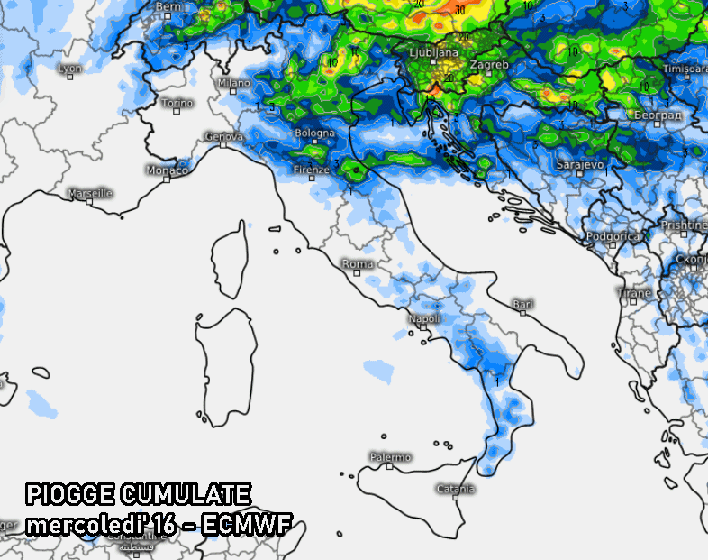 Mercoledì sarà la giornata più movimentata al Nord: temporali attesi sull’arco alpino e prealpino, in estensione alle alte pianure tra pomeriggio e sera. Le zone più esposte sembrano essere quelle tra Lombardia centro-orientale, Trentino-Alto Adige, Veneto, Emilia Romagna e il Friuli tra mercoledì sera e la notte su giovedì. L’energia potenziale in gioco sarà molto elevata, con rischio concreto di grandinate, nubifragi e colpi di vento (i famosi downburst), soprattutto in prossimità delle celle più attive.