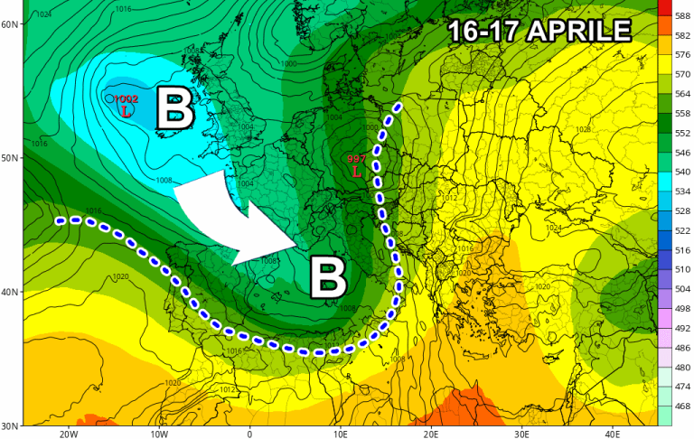 L’instabilità si accentuerà ancor di più a inizio settimana, ma l’apice del maltempo è atteso addirittura tra martedì e giovedì, proprio nel cuore della Settimana Santa. Dopo la perturbazione prevista tra domenica e lunedì, ne arriverà una seconda ancor più forte e ancor più organizzata, che potrebbe produrre precipitazioni molto abbondanti e persistenti su tante nostre regioni.
